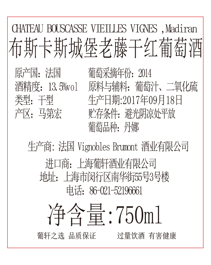 葡萄品種 | 丹娜 | 酒精度 | 14%(2016)/13.5%vol(2014)14.5%(2008)/14%(2007)/13.5%vol(1998) | 酒體 | 豐滿 |