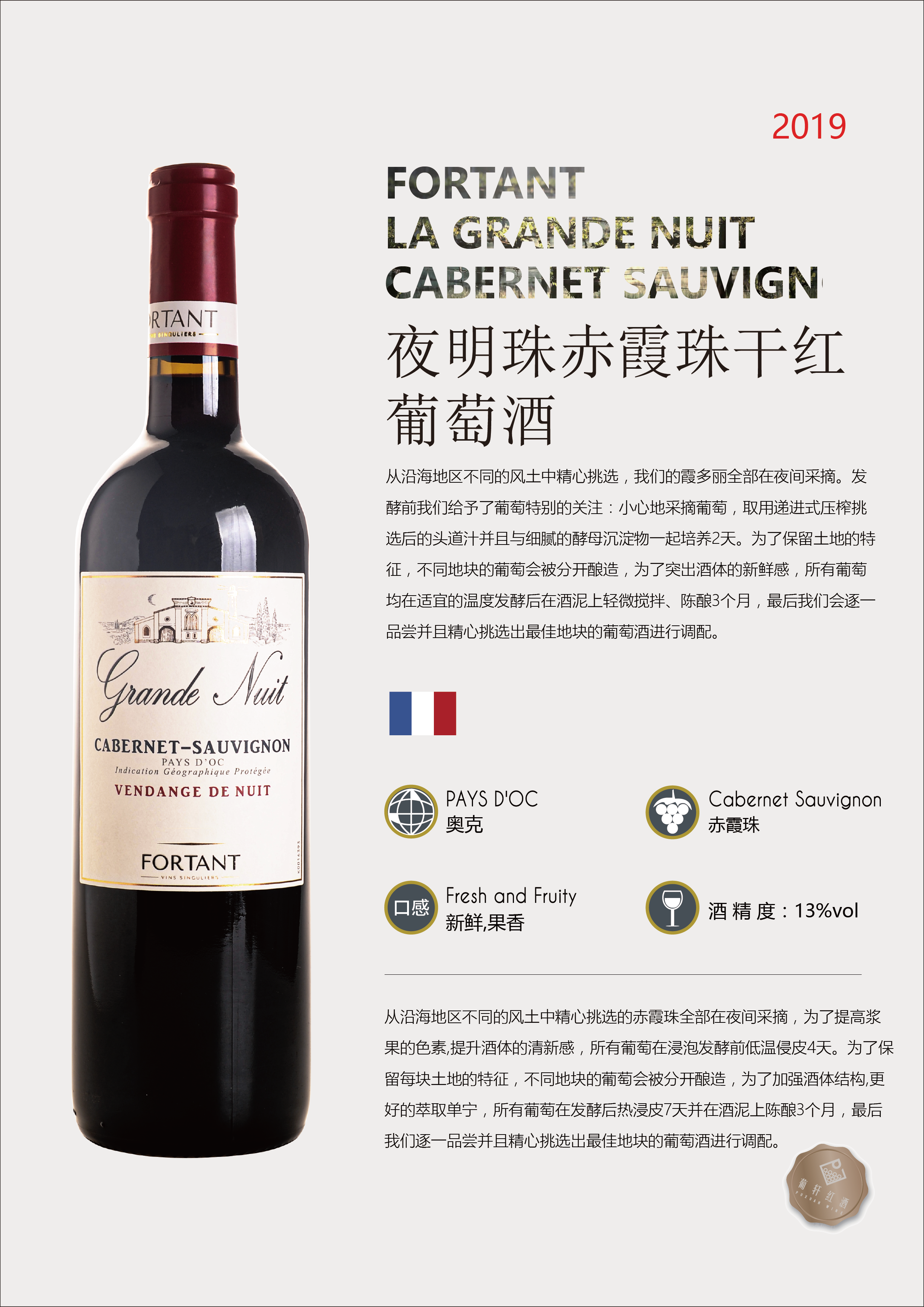 橡木桶陳釀時間 | 法國橡木桶中酒泥上陳釀3個月 | 葡萄采摘年份 | 2019年 | 產品類型 | 干紅葡萄酒 |
