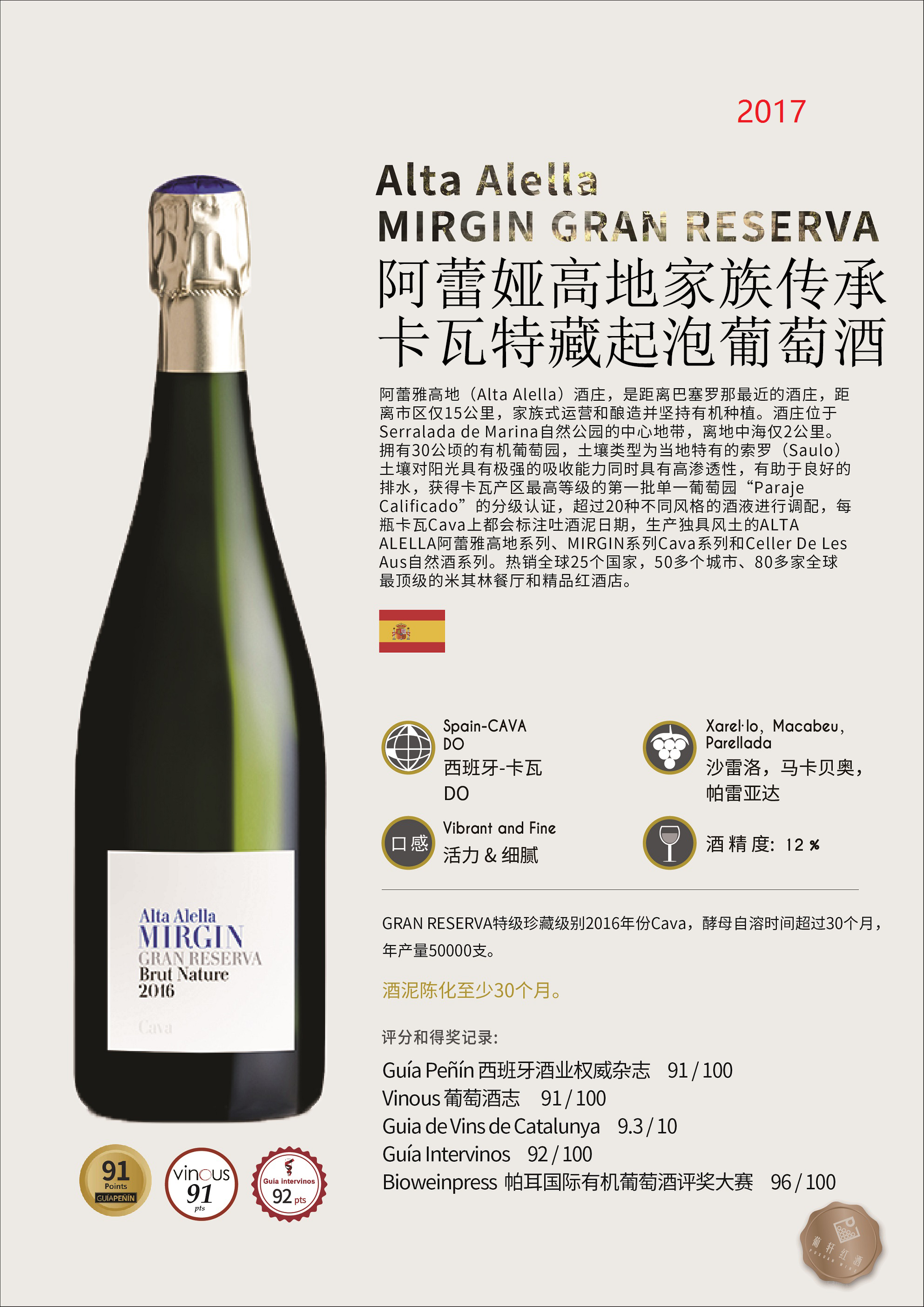 酒莊歷史介紹 | ALTA ALELLA MIRGIN位于Serralada de Marina自然公園,距地中海2公里,距巴塞羅那市中心15公里。這是一個家庭經(jīng)營的項目Josep Maria Pujol-Busquets,由他的妻子CristinaGuillén和他們的兩個女兒Mireia和Georgina共同管理。1991年,他們收購了19世紀(jì)的CANGENíS房地產(chǎn),恢復(fù)了六十多年的葡萄園,以及在斜坡和露臺上種植了傳統(tǒng)品種Pansa Blanca和Mataró。他們目前在Alella鎮(zhèn)和Alella鎮(zhèn)之間擁有30公頃的有機(jī)藤蔓。自成立以來,酒廠一直在經(jīng)過認(rèn)證的有機(jī)農(nóng)業(yè)上建立了一個平衡良好的生態(tài)系統(tǒng),尊重這個產(chǎn)區(qū)的本地動植物。因為其擁有的最高類別的卡瓦酒的土地之一被:“ Paraje Calificado”認(rèn)可證實了其品質(zhì)和獨特性。同時,作為DO Cava產(chǎn)區(qū)第一個不含亞硫酸鹽的釀酒師(自2006年起),這個家庭持續(xù)釀造天然卡瓦酒和葡萄酒。 | 級別 | DOC | 酸度 | |