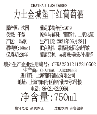 橡木桶陳釀時間 | 18-20個月 | 葡萄采摘年份 | 2019年 | 產品類型 | 干紅葡萄酒 |