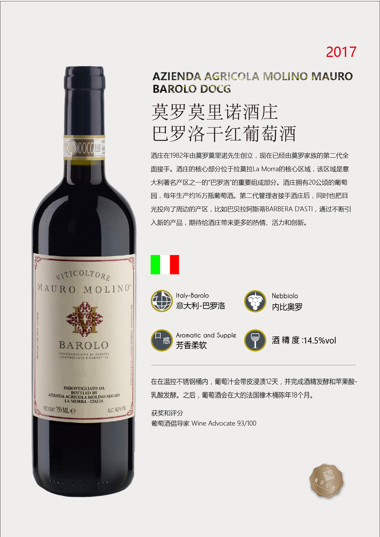 品飲記錄 | 顏色:淺紅寶石色 覆盆子、紅醋栗、藍莓、櫻桃、玫瑰、紫羅蘭 口感:濃郁的覆盆子和玫瑰花的香氣,香味持久,柔和的丹寧極有層次感。 | ||||