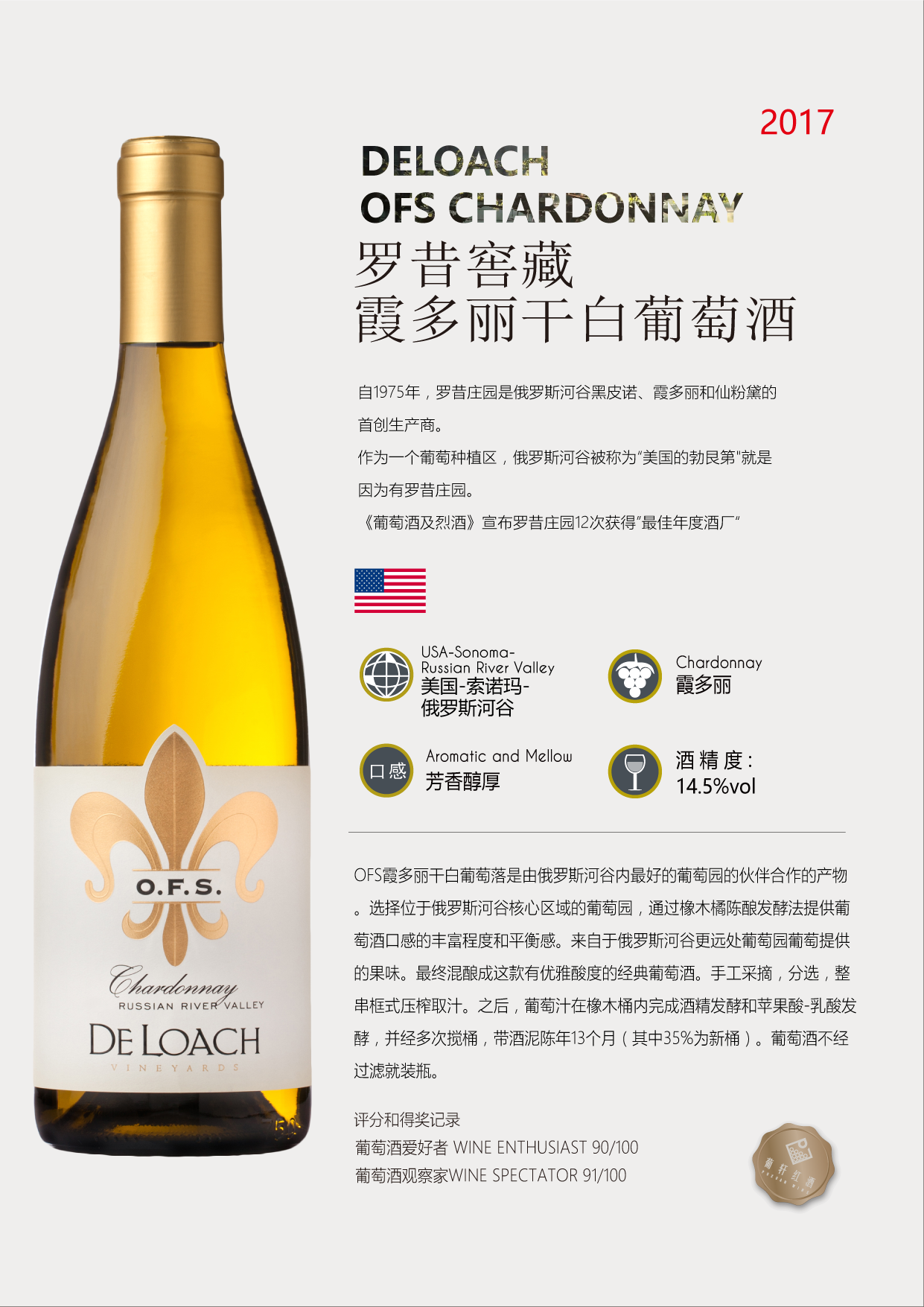 品飲記錄 | 這款最新的OFS霞多麗是一個平衡的、復雜的葡萄酒。反映了每一個葡萄園的最佳特性。開瓶后撲鼻而來新鮮檸檬和蘋果的香味,口感伴有烤蘋果和甘草的味道,持久的回味揮之不去。 | ||||