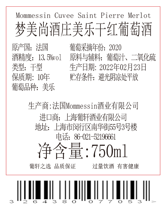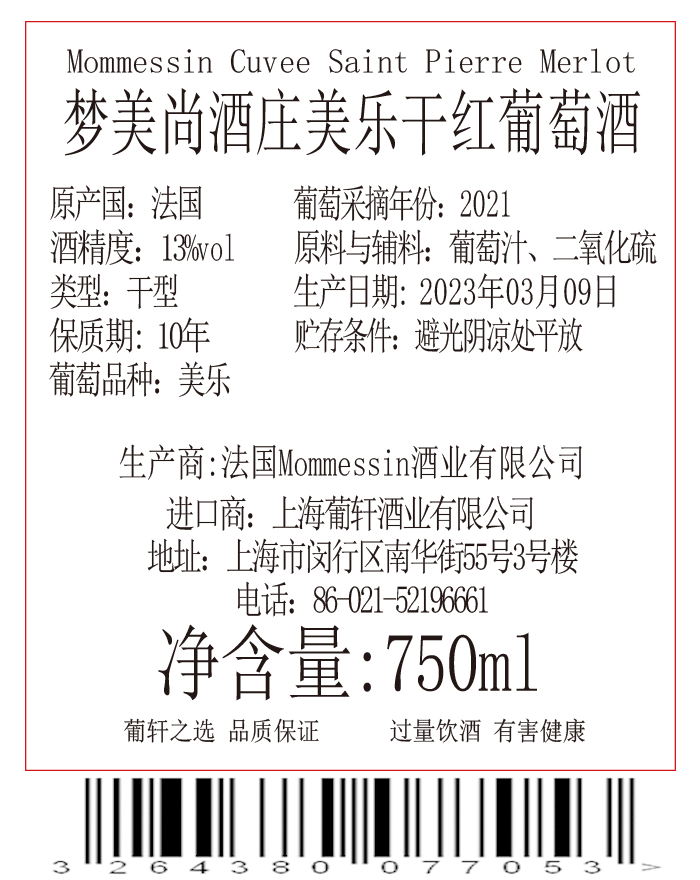 酒體顏色 | 紫紅色 | 包裝規(guī)格 | 6支/紙箱 | 口感 | 果香 |