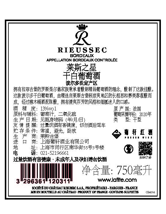 橡木桶陳釀時間 | 6-8個月 | 葡萄采摘年份 | 2020年 | 產品類型 | 干白葡萄酒 |