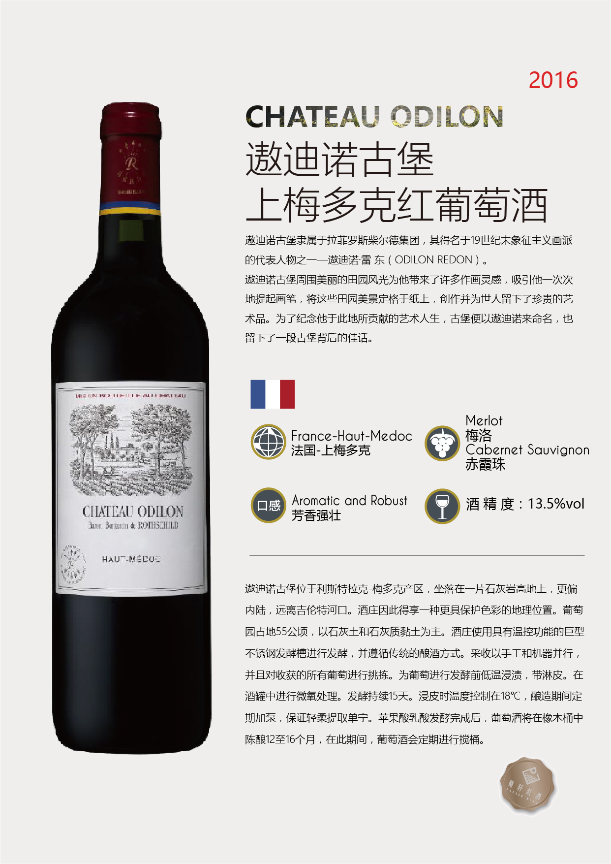 橡木桶陳釀時間 | 12個月 | 葡萄采摘年份 | 2016年 | 產(chǎn)品類型 | 紅葡萄酒 |