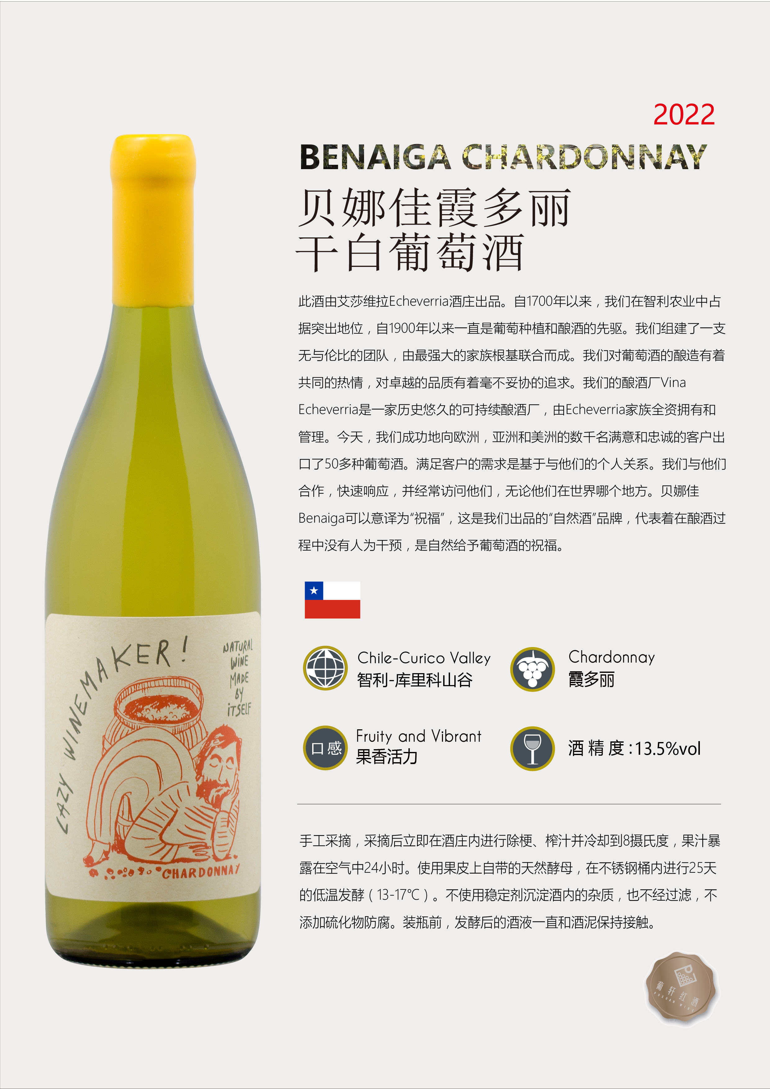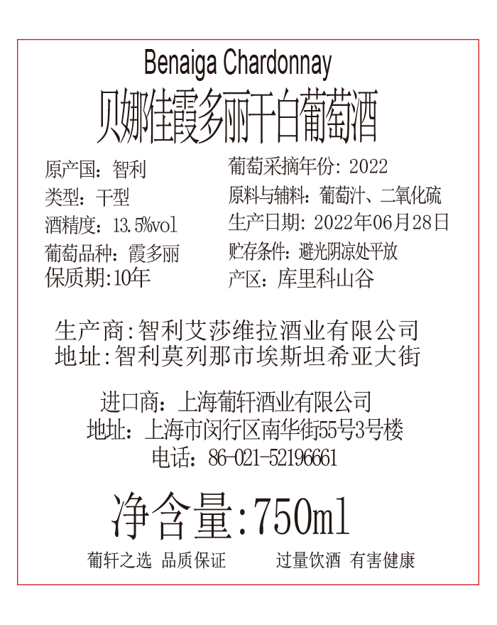 橡木桶陳釀時間 | 葡萄采摘年份 | 2022年 | 產(chǎn)品類型 | 干白葡萄酒 | |