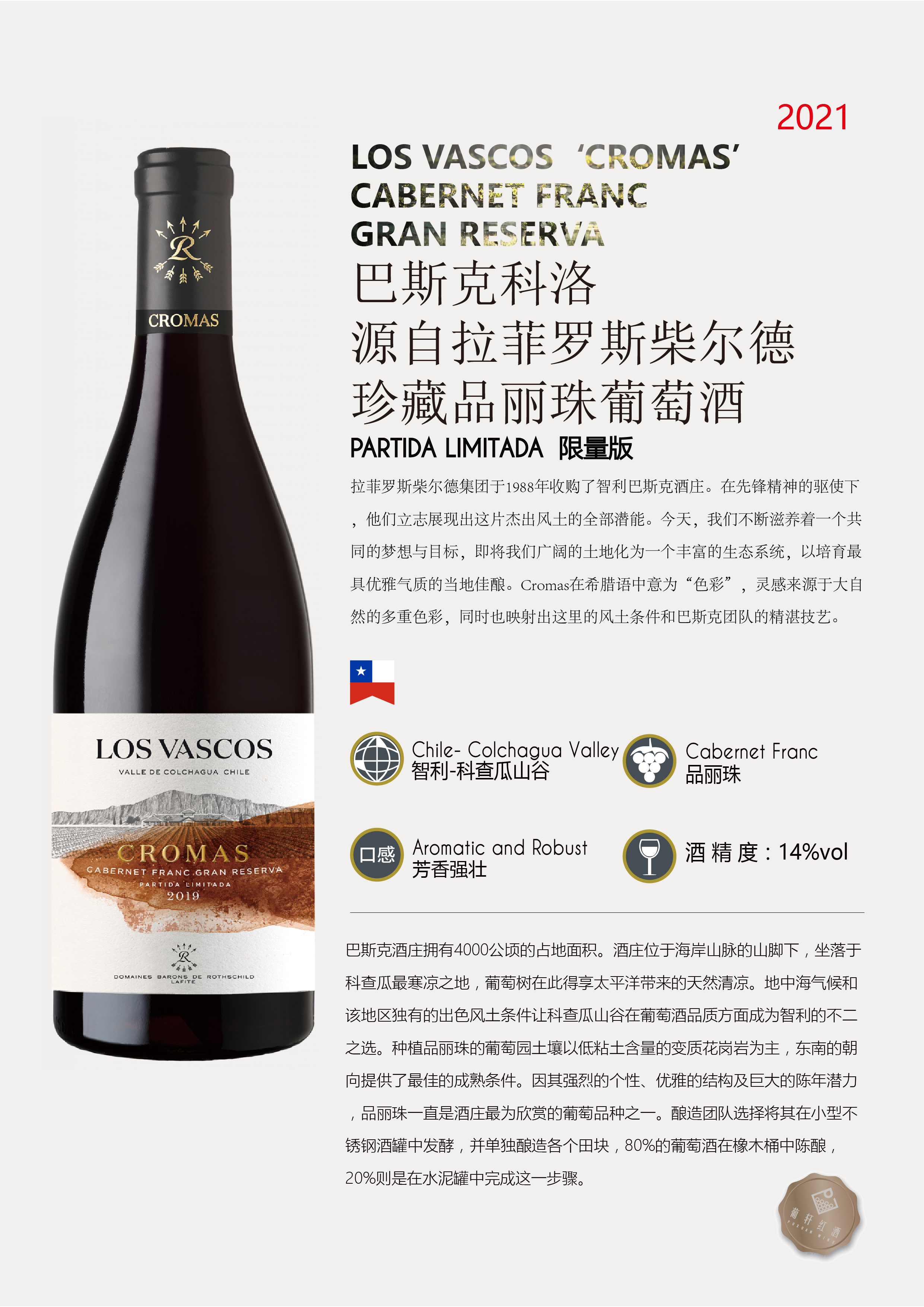 橡木桶陳釀時間 | 葡萄采摘年份 | 2019/2021年 | 產(chǎn)品類型 | 干紅葡萄酒 | |