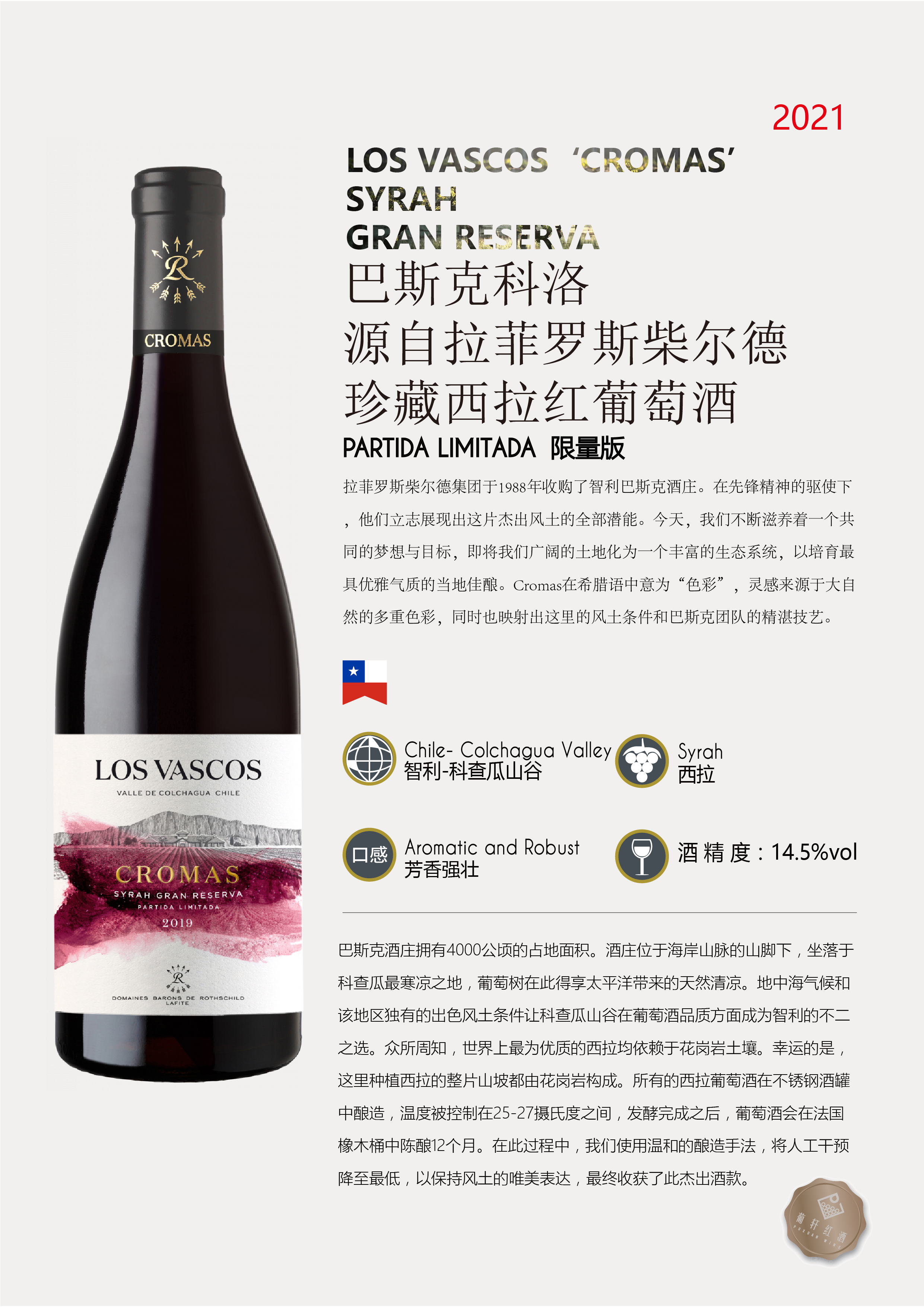 橡木桶陳釀時間 | 葡萄采摘年份 | 2020/2021年 | 產品類型 | 干紅葡萄酒 | |