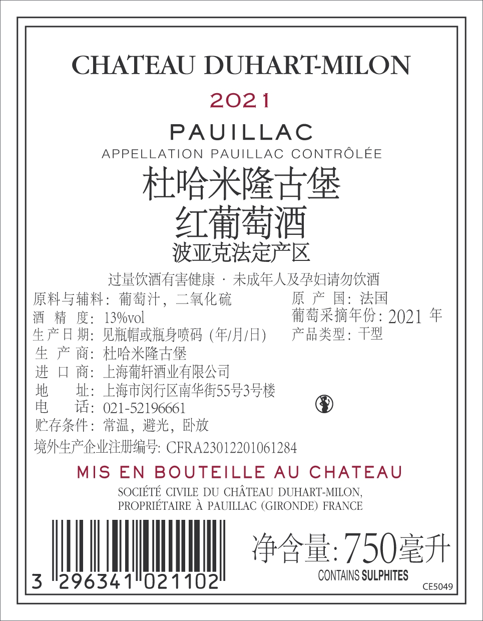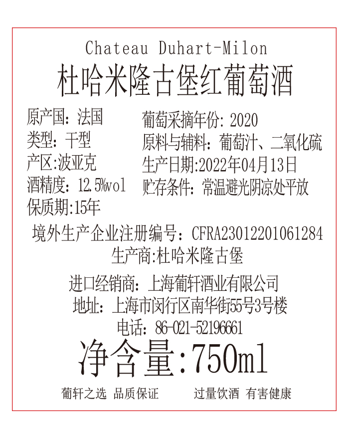 拉菲羅斯柴爾德珍寶紅葡萄酒(小拉菲)