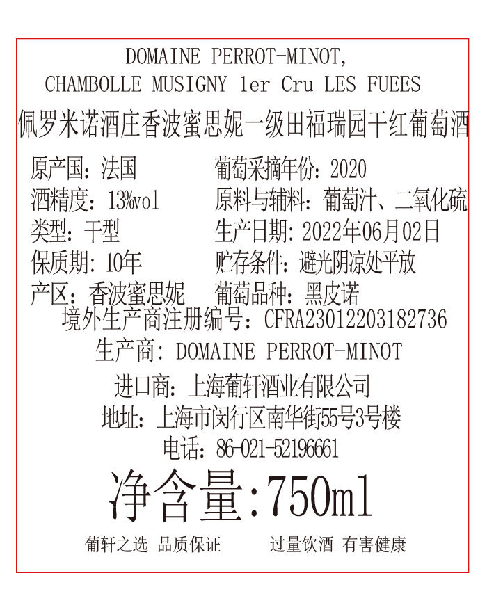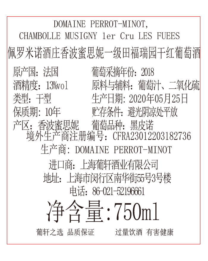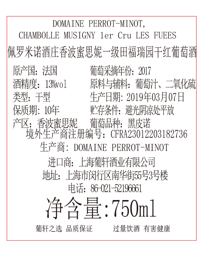 田干紅葡萄酒DOMAINE PERROT-MINOT GRIOTTE-CHAMBERTIN GRAND CRU