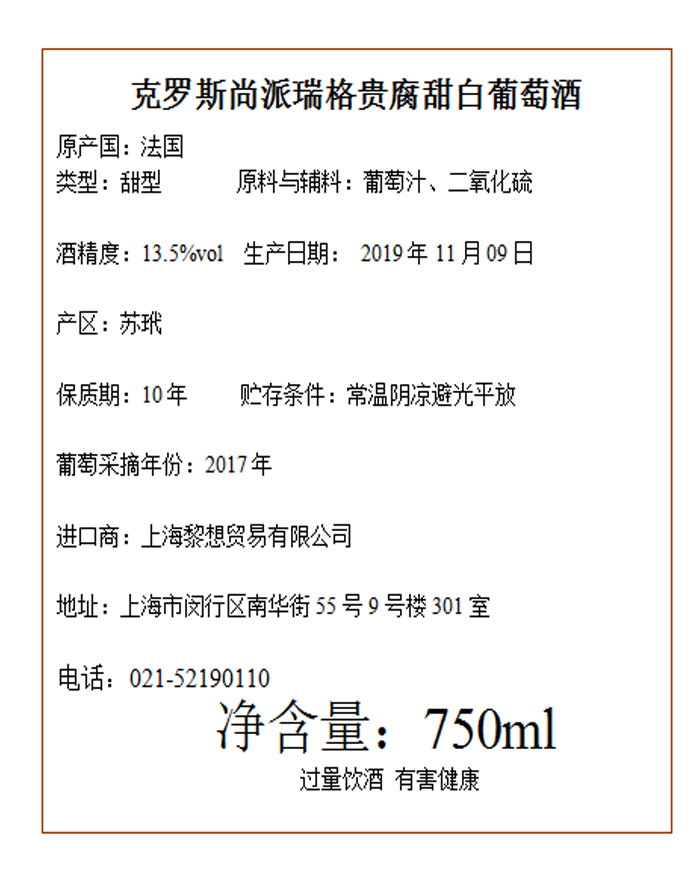 品飲記錄 | 這款甜白葡萄酒,有著蜂蜜、橘子、杏仁和香草的香味,是蘇玳產區葡萄酒的優秀典范,酒體宏大飽滿,且具有復雜度以及很好的陳年潛力。 | ||||