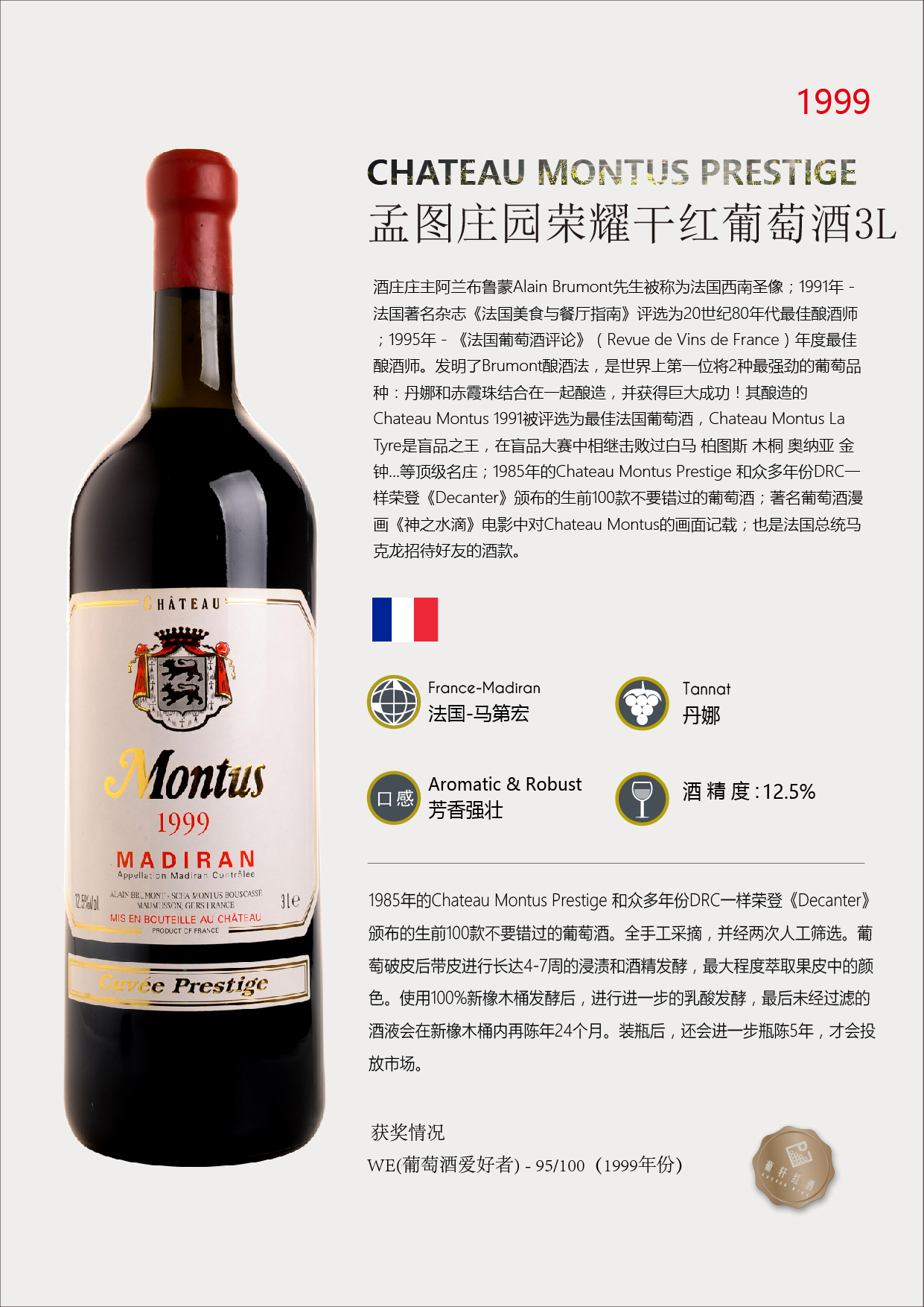 孟圖莊園榮耀干紅葡萄酒6L