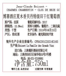 博賽酒莊香貝丹特級田干紅葡萄酒
