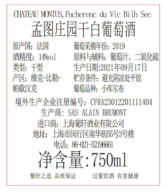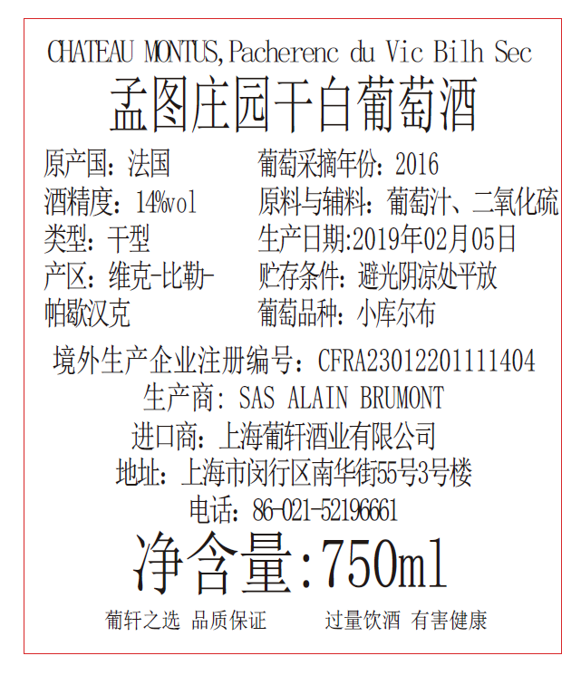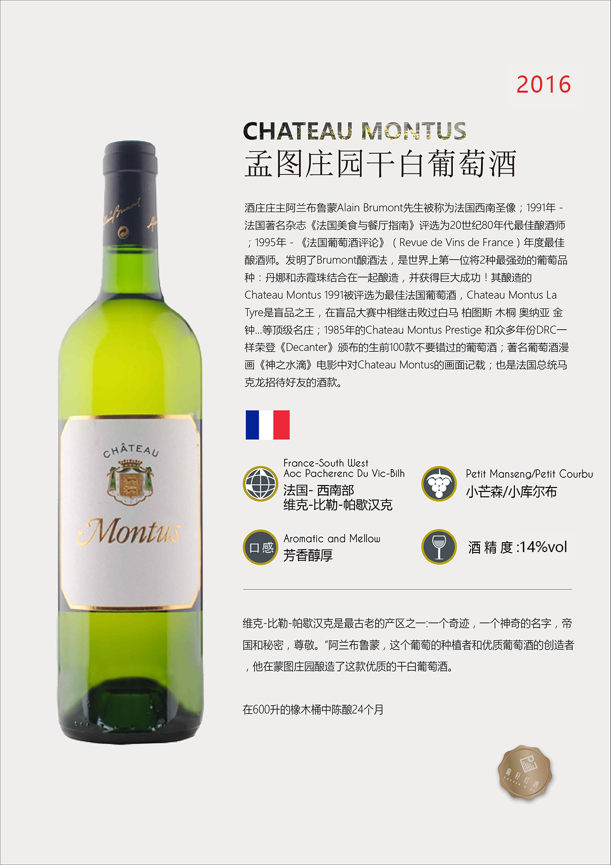 葡萄品種 | 小庫爾布、小芒森 | 酒精度 | 14.5% | 酒體 | 中低 |
